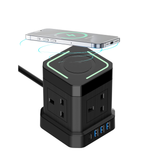 Homesafe desktop plug extension is equipped with 5 power outlets + 1 type-c port + 3 usb-a ports and has power for 9 devices simultaneously