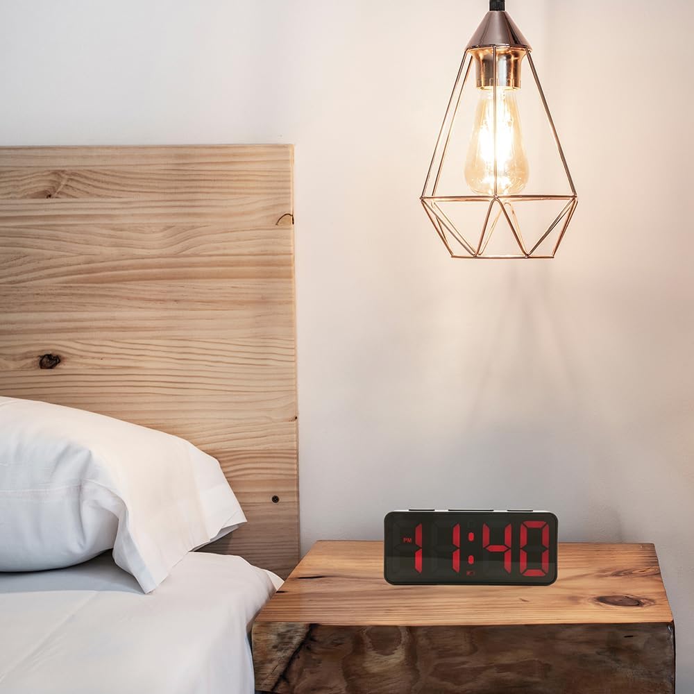 Non Ticking Alarm Clock with 5 Adjustable Brightness: LED screen brightness is adjustable and there are five levels to choose by pressing the UP or DOWN button. There is no ticking from the LED Digital Alarm Clock to keep you awake at night.
