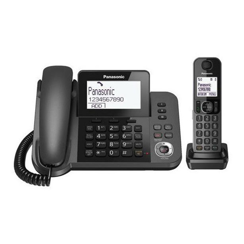 Answering machine that is ideal for home or office use. Offering the reliability of a deskphone with the convenience of a cordless handset, the KX-TGF320E is a stylish and easy to use landline phone. Key benefits include: advanced answering system with 40 minutes recording time, exceptional sound quality, and plug-and-play installation.