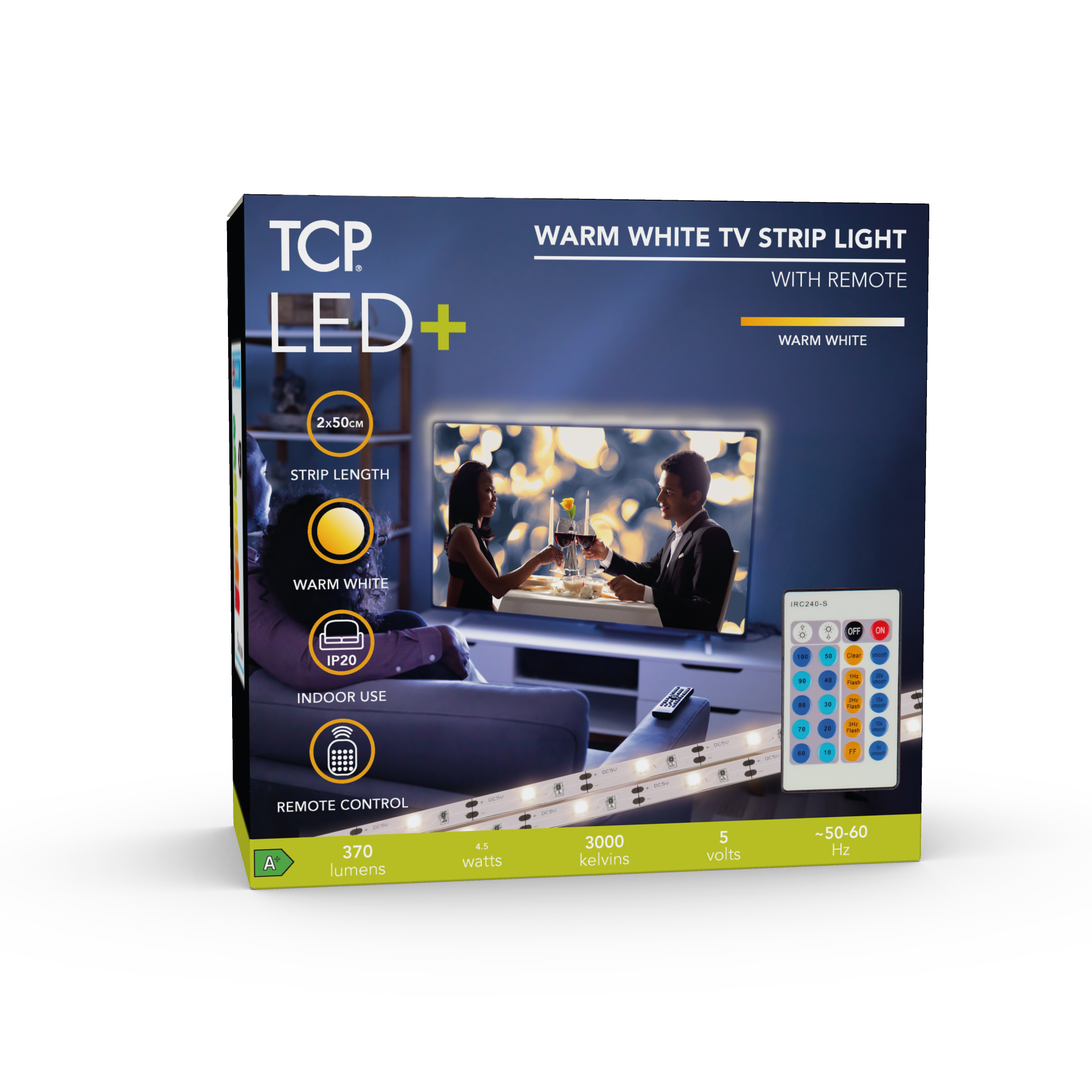 TCP LED Plus Remote Strip Light TV 3000 Kelvin USB, Warm White