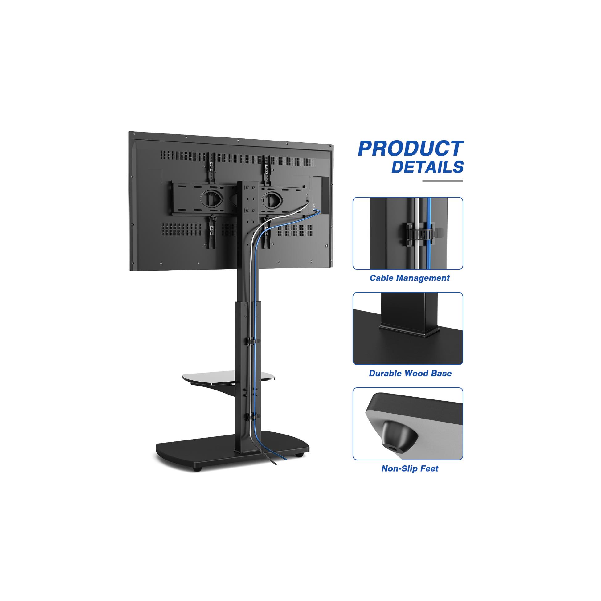 Perfect for TVs up to 55″, the Ttap FS1-BLK 685 mm TV Stand with Bracket features a toughened glass shelf ideal for storing your home entertainment devices such as Blu-ray players and games consoles.