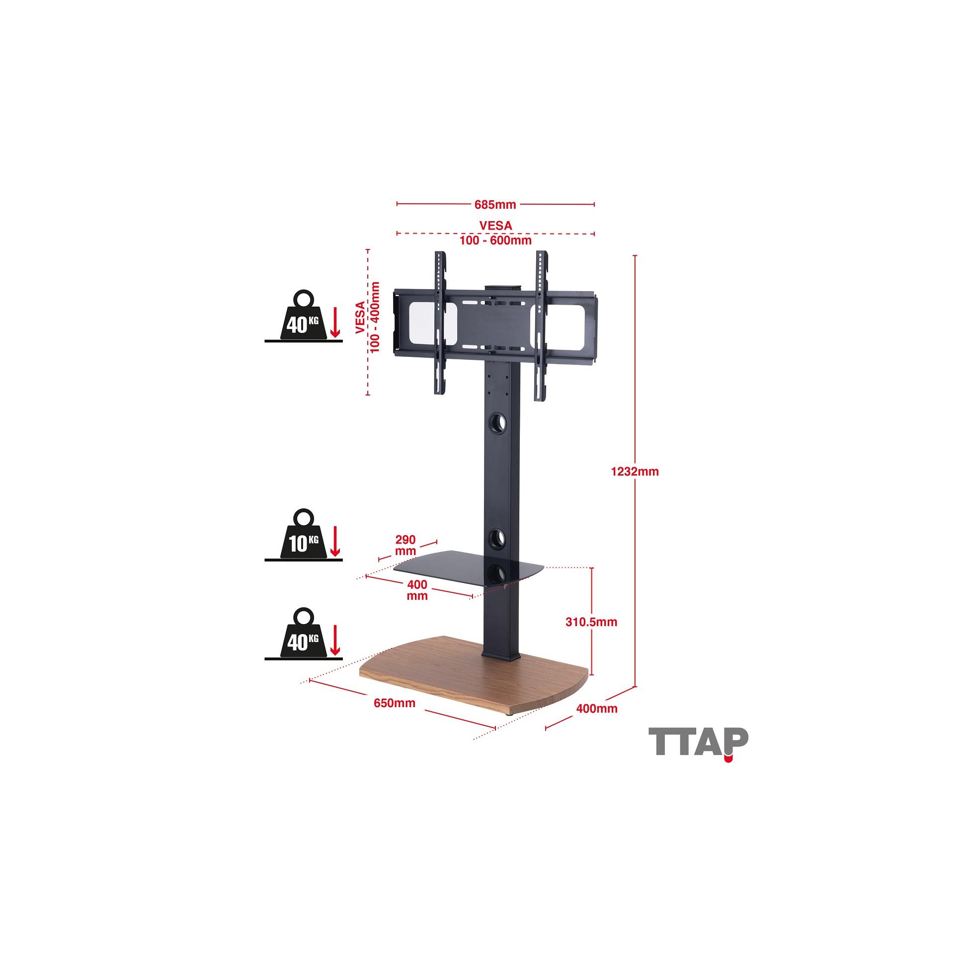 TTAP FS1-Oak Up to 55″ TV Stand with Bracket – Oak, For up to 55” Televisions, Maximum supported weight: 40 kg, Wood / glass, VESA compliance: 600 x 400, 1 shelf